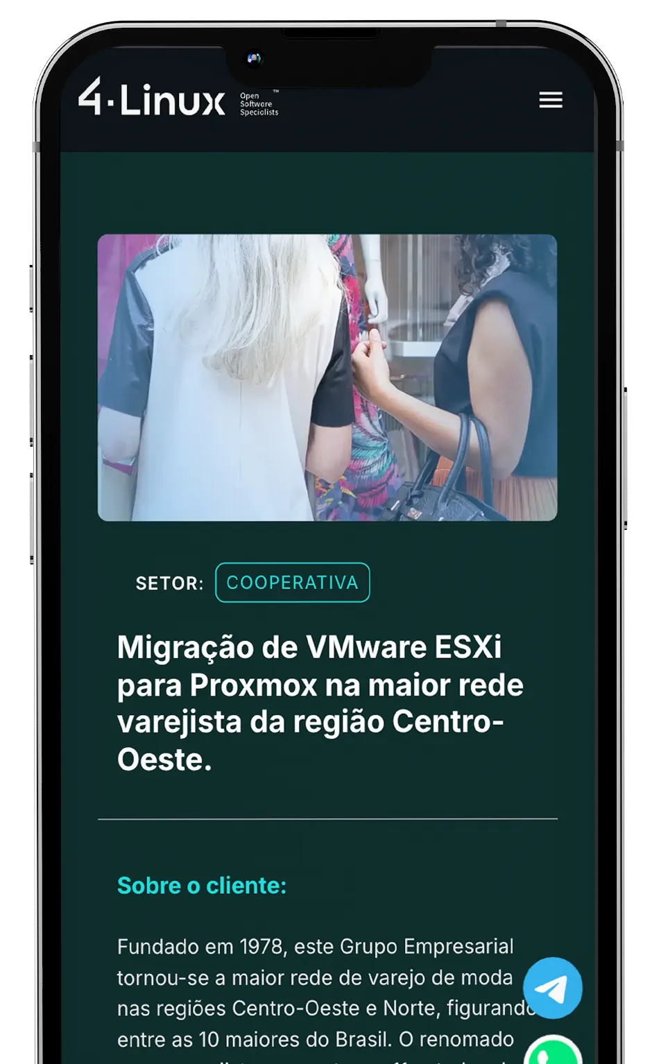 Uma das maiores redes varejistas do Centro-Oeste confiou na 4Linux para migrar seu ambiente VMware ESXi para o Proxmox VE. O resultado foi redução significativa de custos com licenciamento, infraestrutura mais moderna e escalável e suporte contínuo da 4Linux para manter a operação estável.