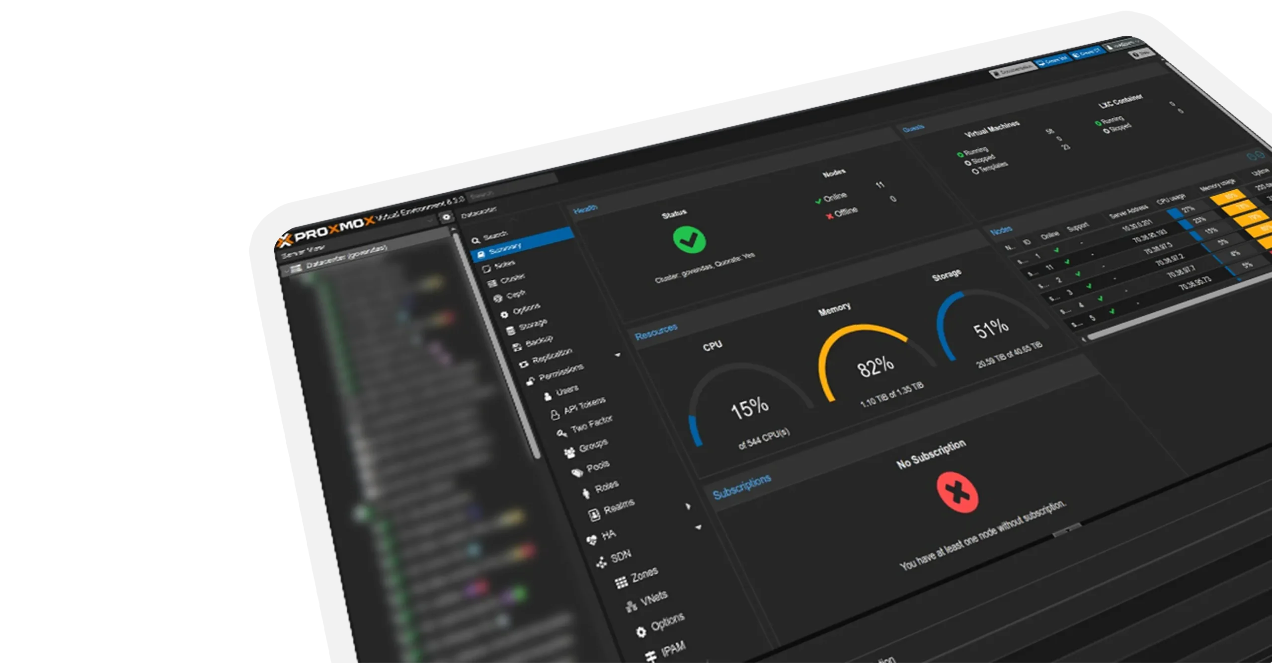 O Proxmox VE é a alternativa open source robusta, sem custos de licença e com recursos completos de alta disponibilidade, backups integrados e gestão centralizada.